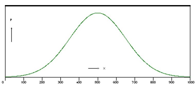 Look at the bell curve. Most of the values bunch up around the mean (x̄ = 500).